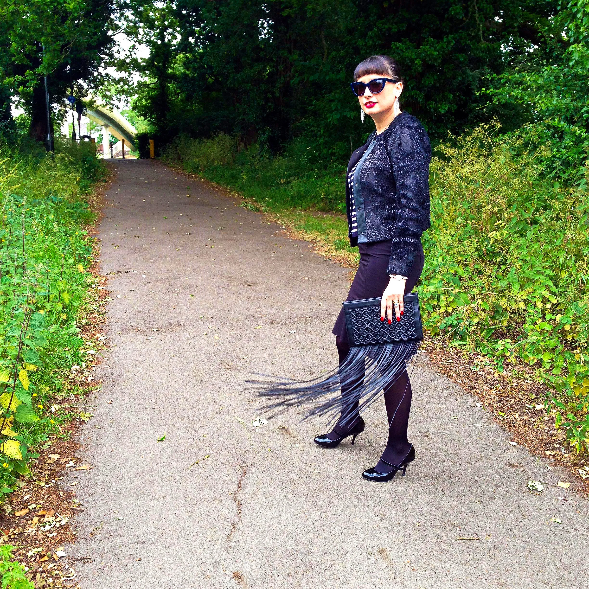 As for accessories I'm wearing a bit of silver sparkle: my new "chandelier" earrings by Bijou Brigitte and my Eiffel Tower necklace that I bought in a souvenir shop in Paris. I added my new Uterque fringe clutch and sunnies to give a bit of fun to the outfit. Usually fringe is used on festival looks or even summer but, here, I decided on showing how you can break these conventions and just have fun with your clothes.