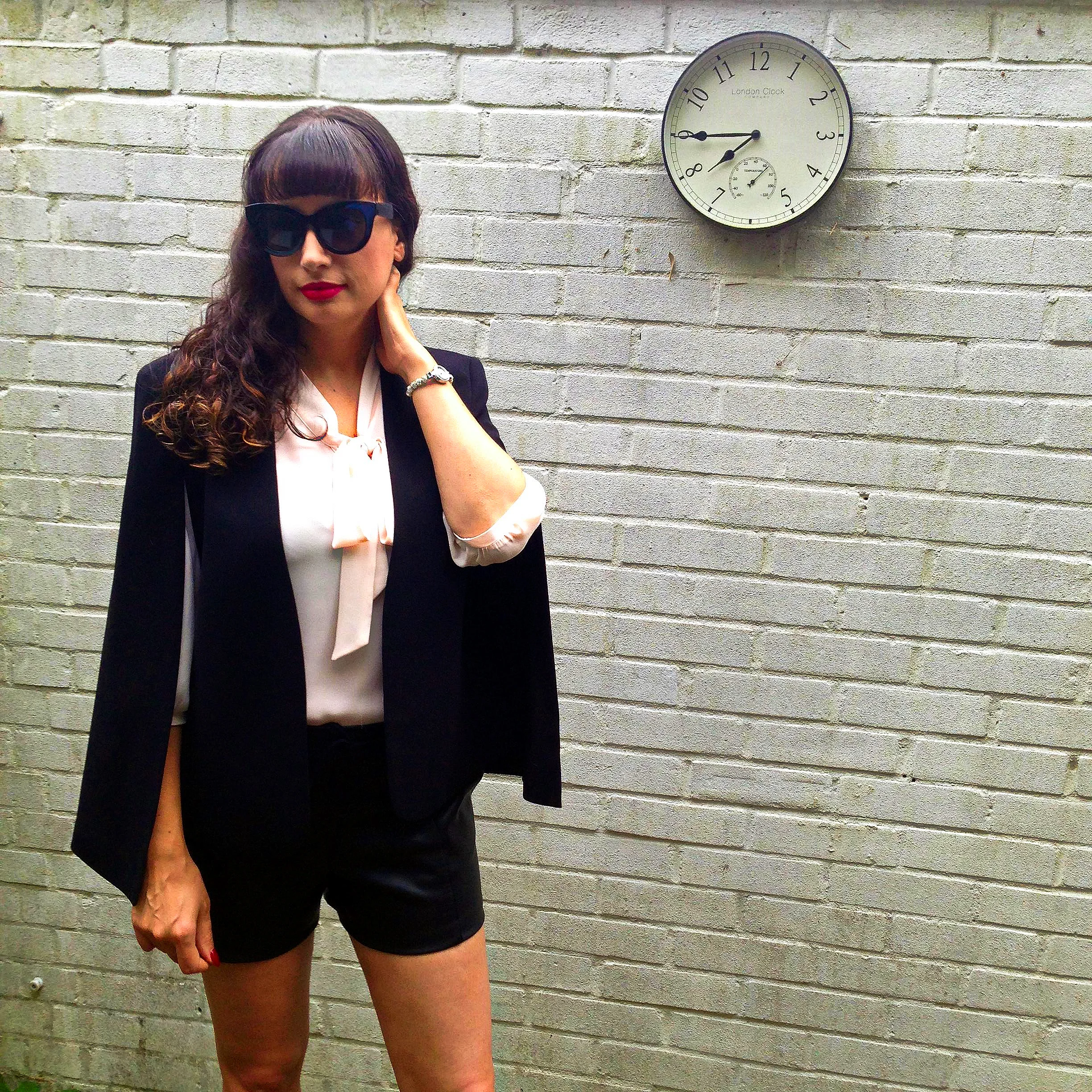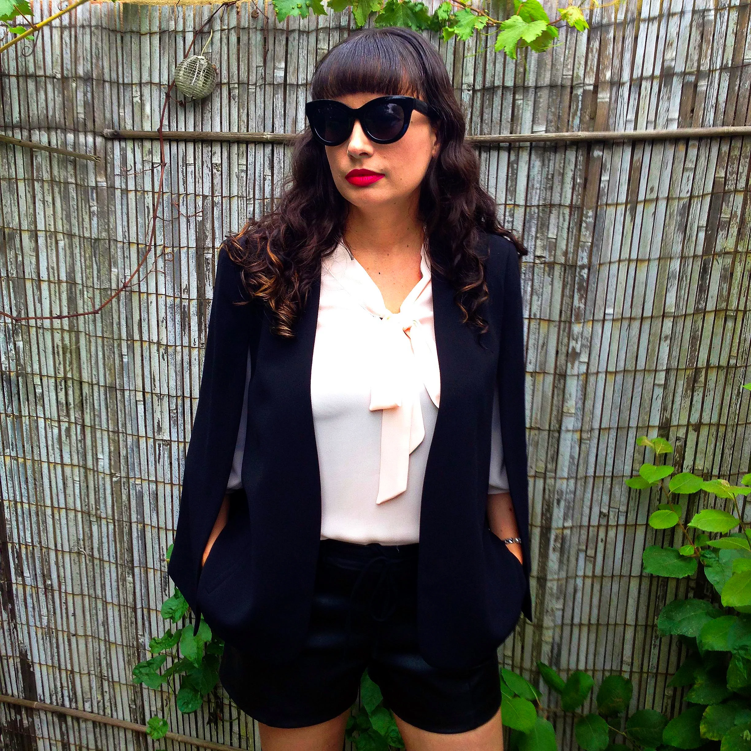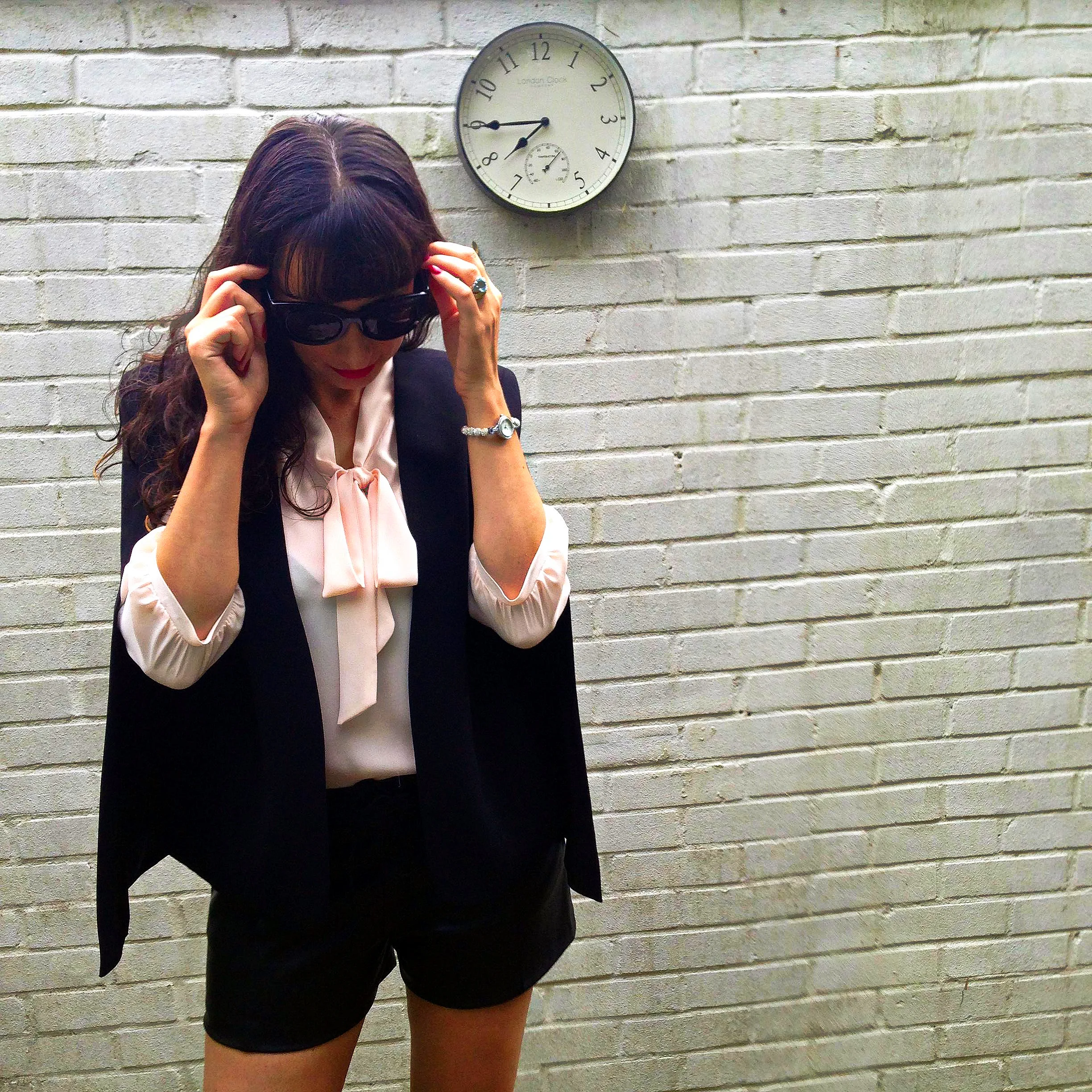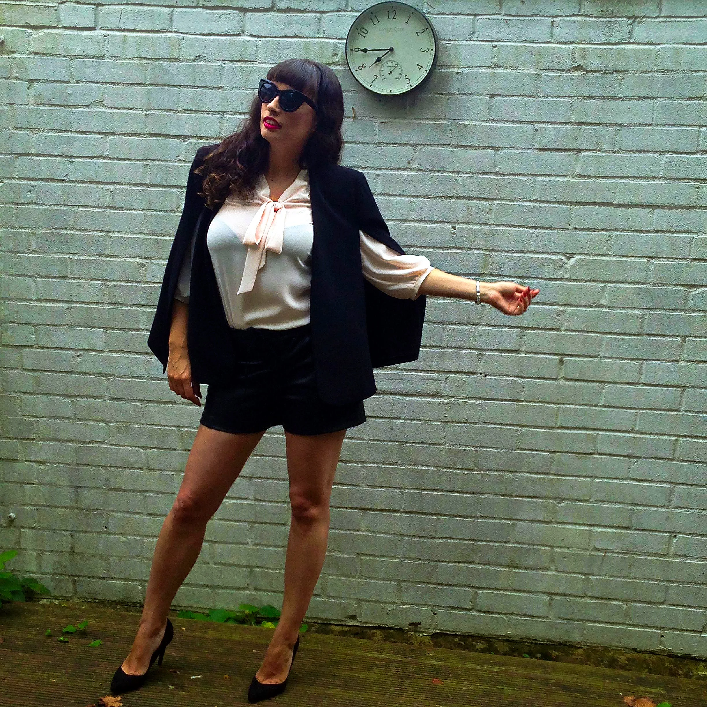 For this look I wanted to bring the Cape to the spotlight but, on the other hand, I also wanted to go for a young and fun look. To bring a little bit of youth to it, I matched the cape with a pair of leather shorts. As for the shirt I picked this blush pink bow blouse to match the cape on the ladylike vibe.