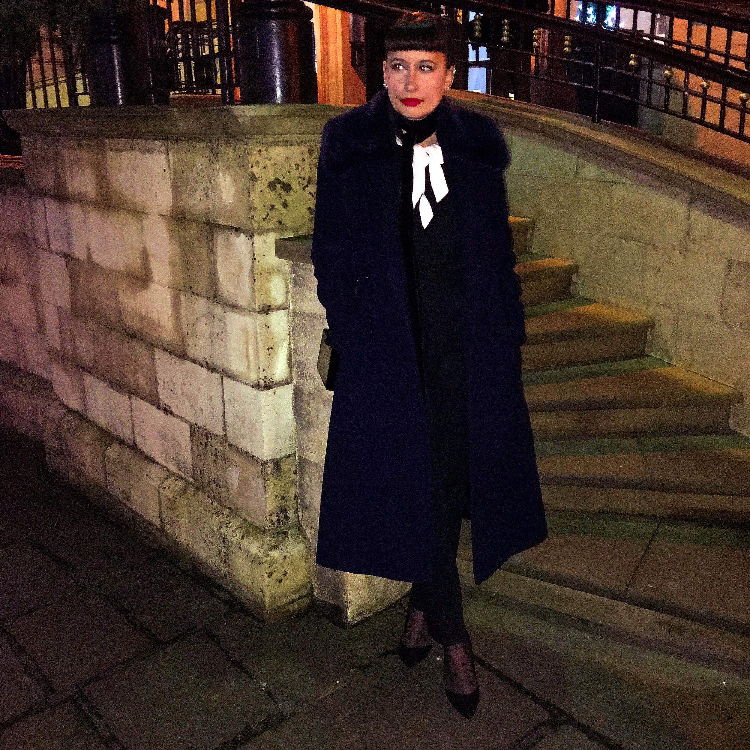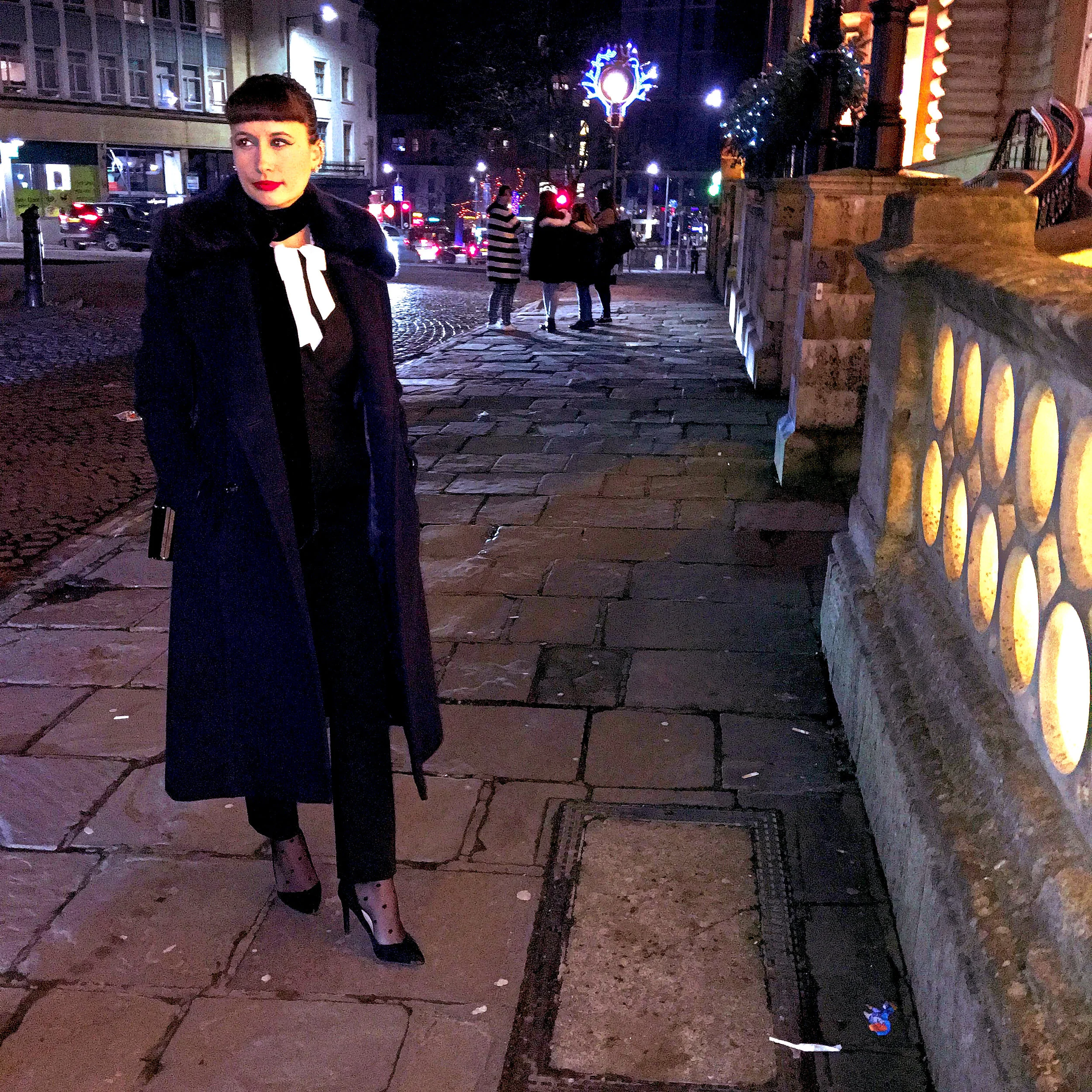 Quando se vive no Reino Unido e sabido que nao se pode sair a noite sem umas camadas de roupa bem quentinhas! Ja pertinho do Natal, saimos uma noite, na cidade de Bristol, e o frio era de rachar. Decidi-me por usar o meu sobretudo azul meia-noite e, para ser honesta, tudo o resto escolhi depois. Quando se tem um bom abrigo e facil vestirmo-nos mas, eu tambem queria estar bem vestida sem ele....