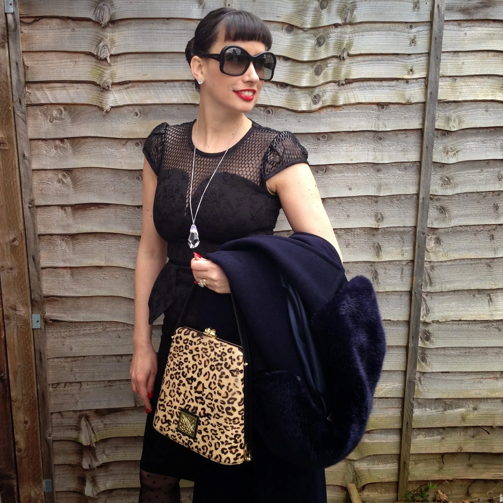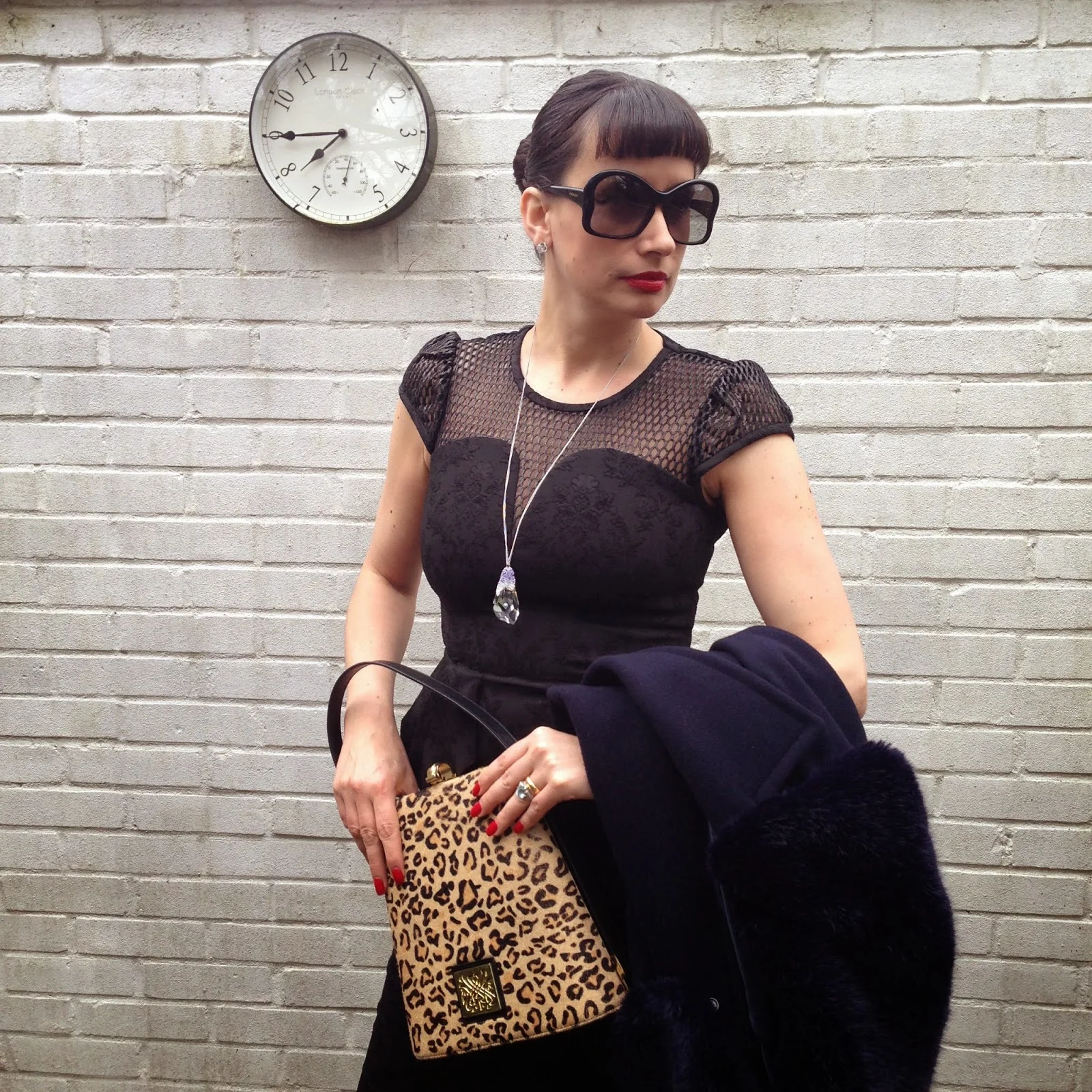 I wanted to go for chic so I added a long crystal pendant, high heeled shoes and my animal print shoulder / hand bag.