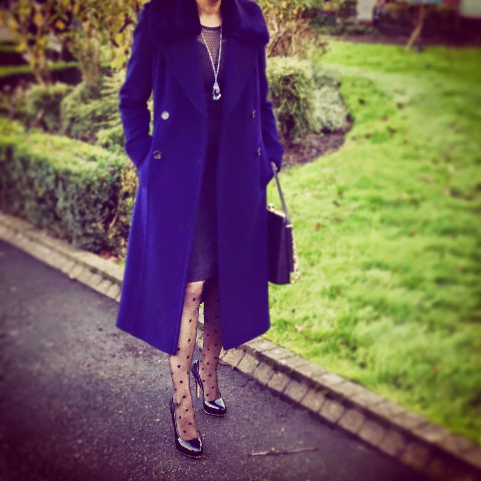 Today I felt I wanted to wear a beautiful dress but the weather was still doing it's tricks so I paired it with a midnight blue faux fur coat.