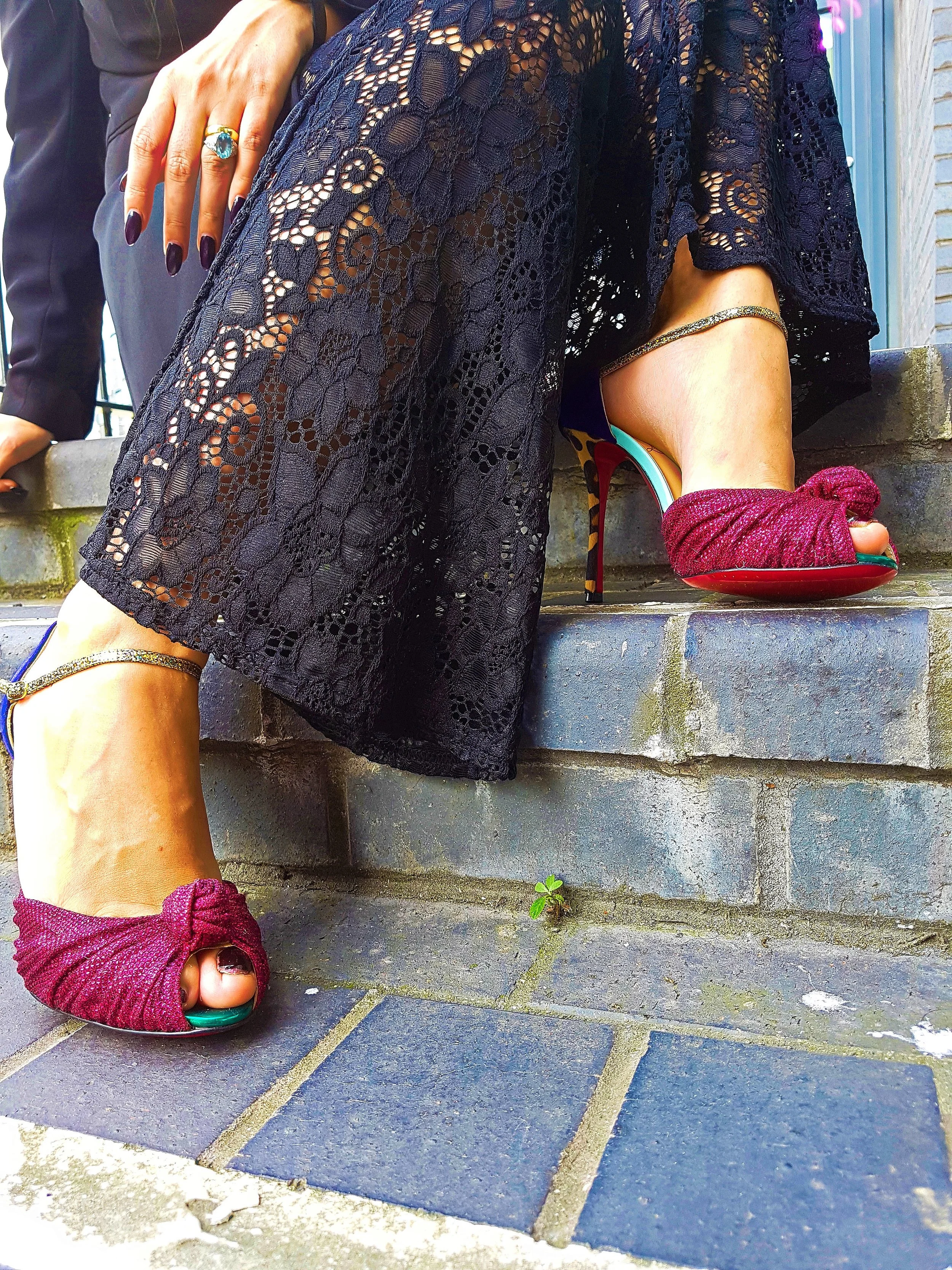 Rear view on my new sandals by Christian Louboutin. These are my very first pair of this amazing brand and of course they are fabulous. They were a very early birthday present from my husband! After this I don't know how he can top it out!
