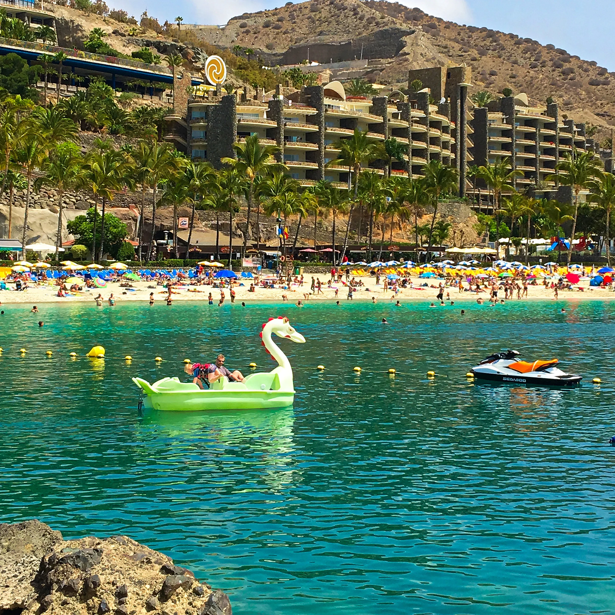 A linda praia de "Anfi", uma praia de agua azulada, transparente, e areia branca que parece mesmo saida de um postal...