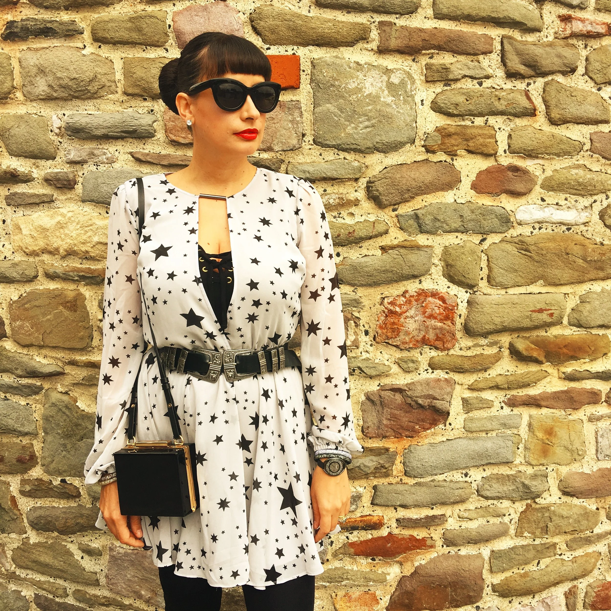 Hello my dear readers!! And how are you today? I'm very good, well excited about this new look and blog post! I love dresses, as you might have noticed already, and this one was no exception! Stars were the "hit" pattern this year as they appeared everywhere: garments, shoes, accessories, makeup... And, of course, I couldn't resist! When I found this "star" pattern dress, on Revolve, it immediately became an obsession and I had to get it!