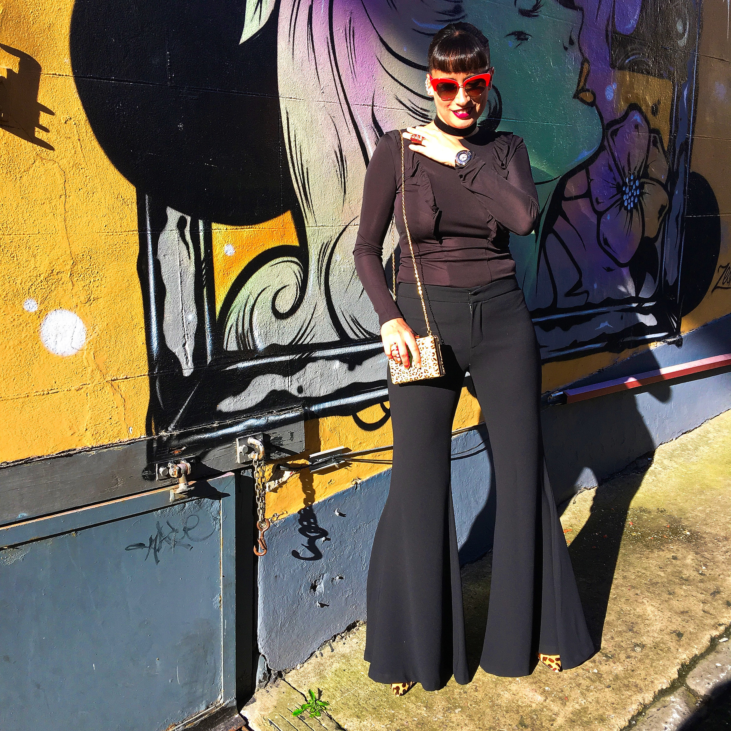These trousers are simply stunning and they make a statement wherever I wear them! I love the extra flare on the hems that is super chic reminiscent of the 70's. Because they are a statement by themselves I wanted to keep the rest of the outfit quite simple so I only went over the top on the accessories by using animal print.