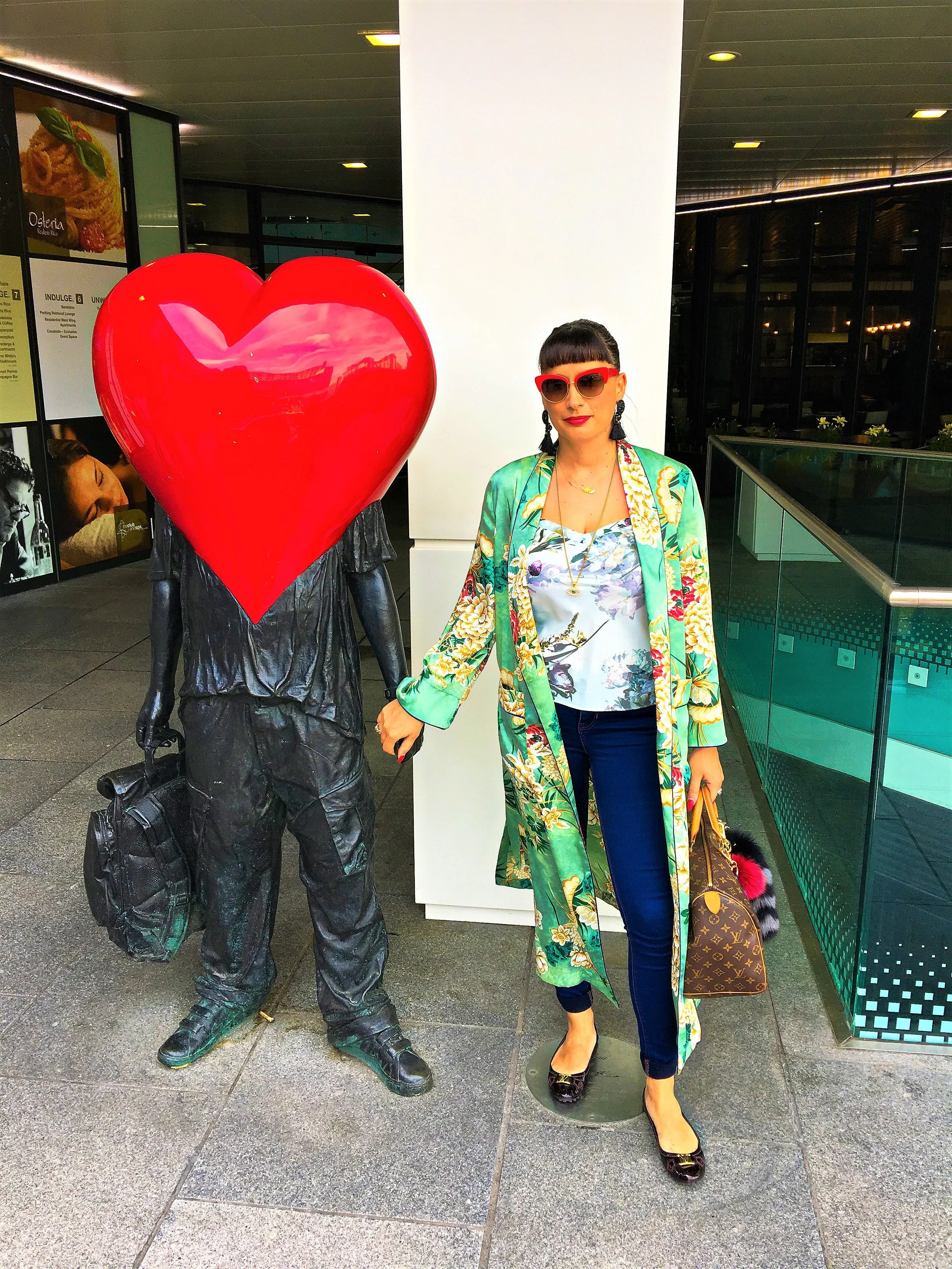 On my first day visiting this stunning city I wore a floral, light green, kimono with a floral tank top and blue jeans. I accessorised with burgundy flats and my Speedy bag by Louis Vuitton, tassel earrings by H&M and my red Dolce & Gabbana sunglasses. I also added a striped furry tail and a red pom pom to my bag and wore a few necklaces I had bought earlier when I was in holiday in Greece.