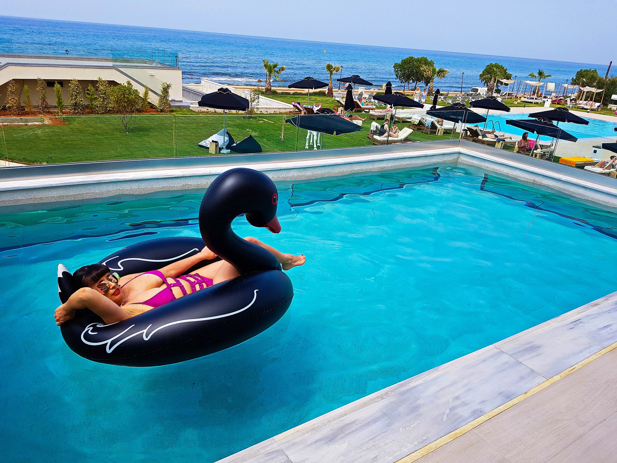 Apart from the stunning sea and mountain views from this gorgeous island we also enjoyed the beach and especially our private swimming pool which was a treat from our Suite "Illios" (the Hotel suites don't have numbers like in the classic rooms but names, our's was called sun in Greek!).