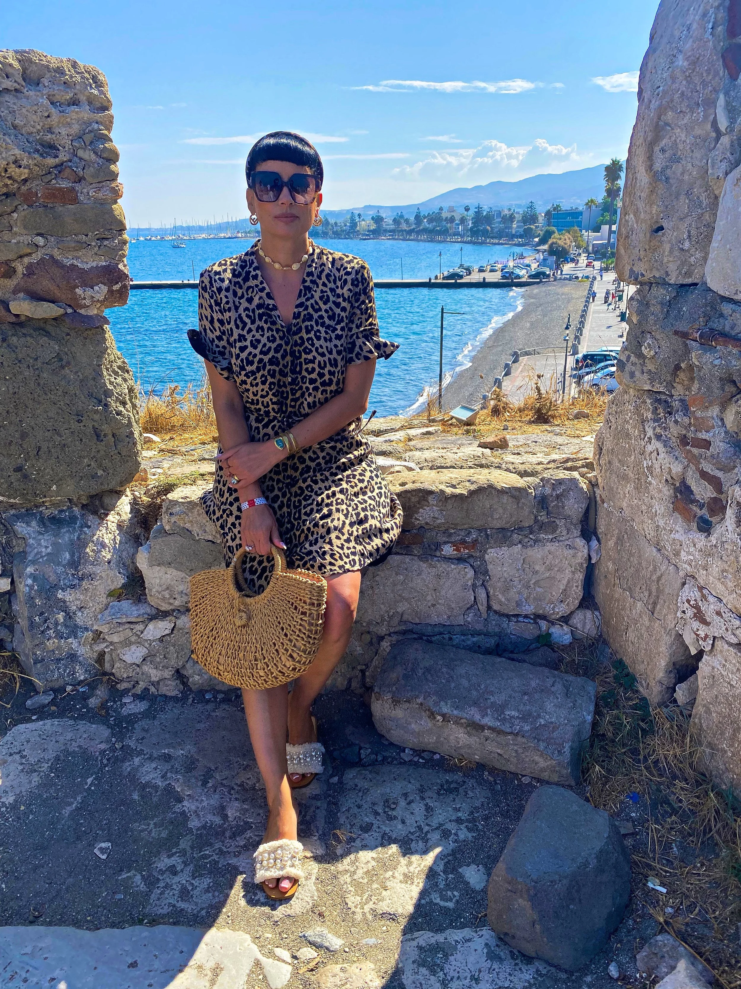 Outfit 5 I wore for our gorgeous Greek holidays was centered in this beautiful, animal print, shirt dress from All Saints that I got a while ago (sold out but similar here).